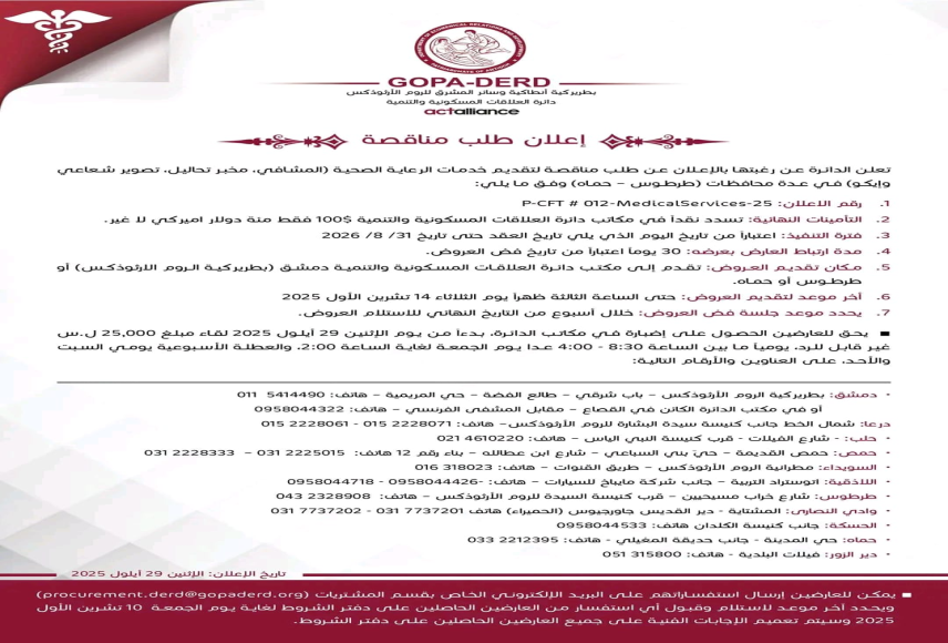 تقديم خدمات الرعاية الصحية في طرطوس وحماه