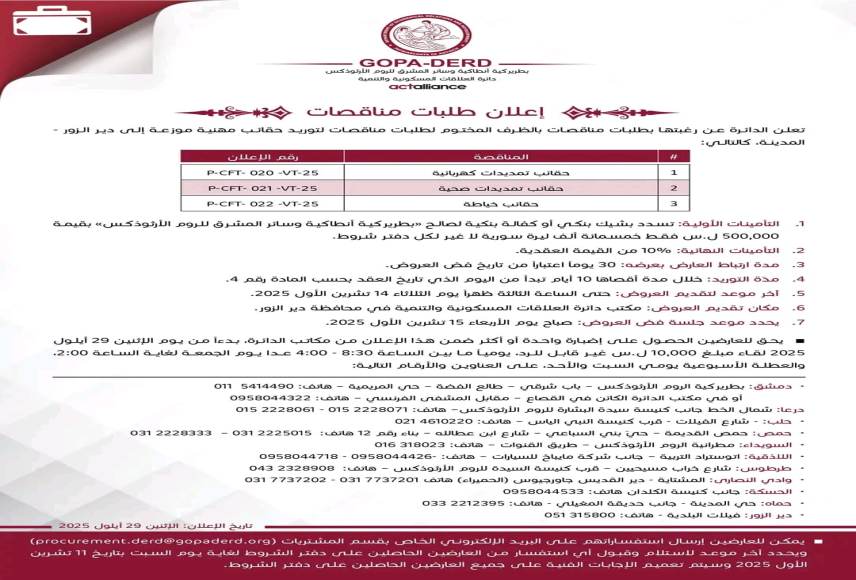 آخر موعد للتقديم على هذه المناقصة قد انتهى.